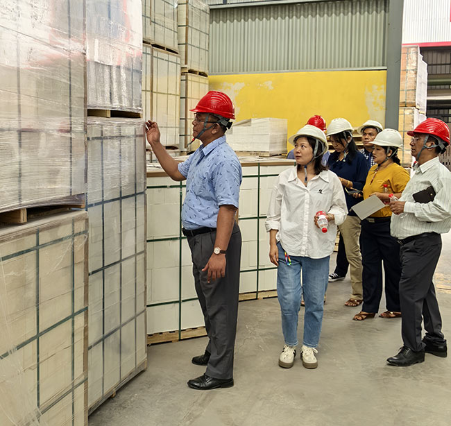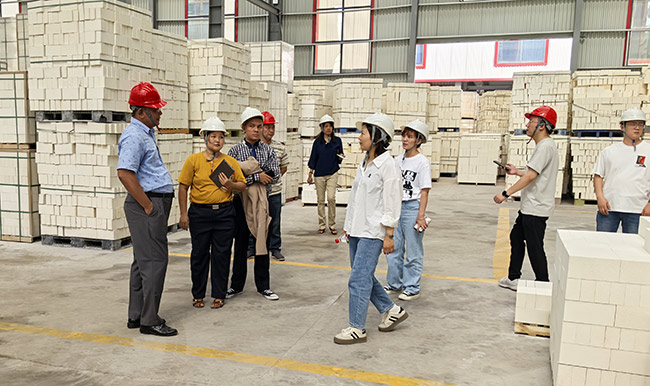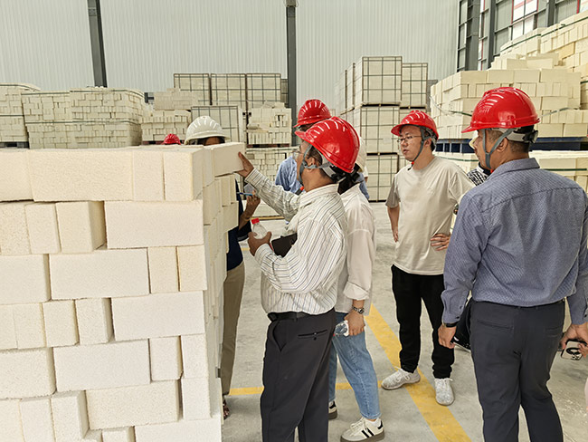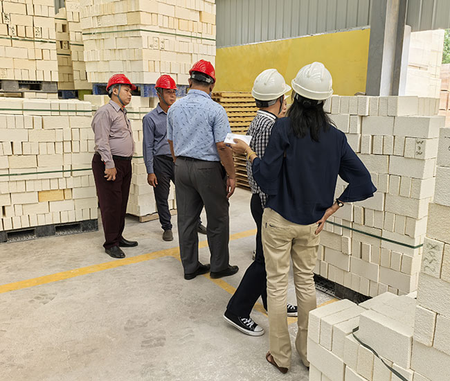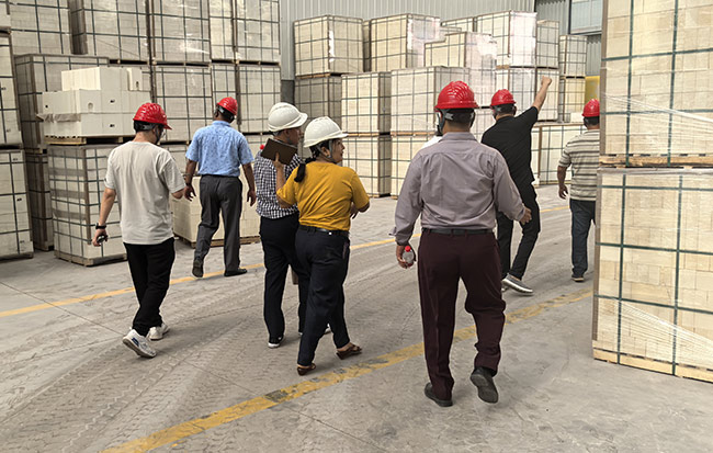 國(guó)外客戶參觀我廠耐火磚倉(cāng)庫(kù)