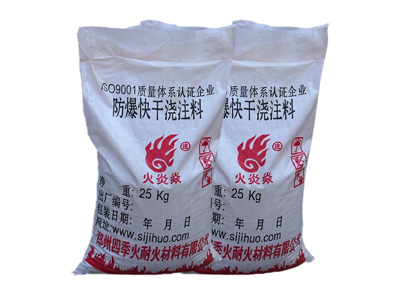 快干防爆澆注料是一種凝結(jié)速度快,烘烤時(shí)間短,防止因快速升溫而導(dǎo)致爆裂的耐火澆注料,它是在低水泥澆注料配料基礎(chǔ)上加入高效促凝劑和防爆纖維等外加劑材料配置而成的。